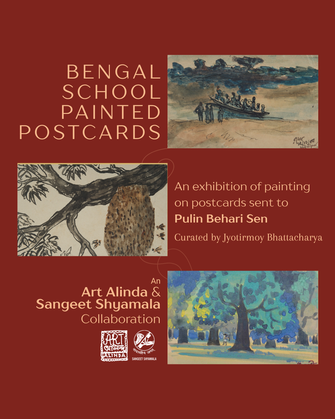 Several postcards by Nandalal Bose have been discovered, filled with exquisite illustrations. In this exhibition, we showcase the postcards of Bose's students, such as Satyen Bishi and Shailesh Deb Barma, written to Pulin Behari Sen. Through this collection, we honour the art of postcards and the creativity of these talented artists.