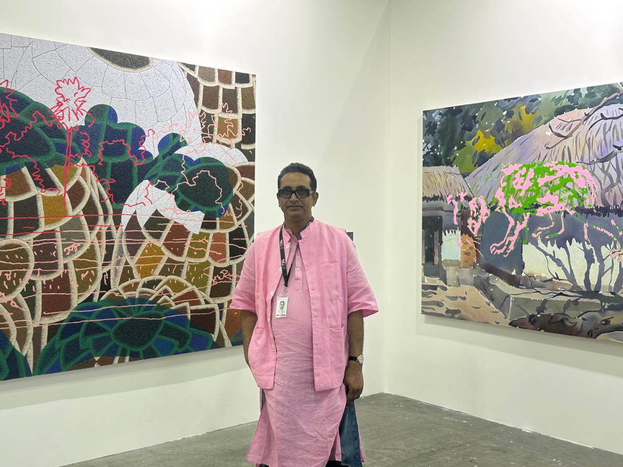 Delving into artist Tawatchai Somkong’s enigmatic series “Soulscape” will require us to go back more than a hundred years to when Rabindranath Tagore was walking the plains of Santiniketan, envisaging building an art school. In 1919, Kala Bhavana was founded, and with Tagore’s direction, it became a space where artistic learning unfolded in the open air, in close communion with nature, and free from rigid academic instruction. Situated amid the red laterite soil, scattered sonajhuri (Earleaf Acacia) forests, and expansive skies of Birbhum, the school grew organically out of the landscape itself. This environment would eventually shape one of the most distinctive traditions of Indian art, the Santiniketan approach to landscape painting. The term “soulscape” evokes more than a physical setting; it suggests an interior terrain formed by emotion, memory, and spiritual experience. In Tawatchai Somkong’s practice, this idea becomes especially resonant because his paintings do not treat Santiniketan simply as a geographical site. Instead, they transform it into a deeply personal, psychological topography where the world he encountered in India merges with the sensibilities he carries from his own culture. His soulscapes draw not only from the red earth, sal groves, and open skies of Santiniketan but also from the lyrical, spiritual aesthetics embedded in Thai visual culture. What emerges is not a record of observation but an evocation of essence fluid, selective, and tinged with nostalgia.