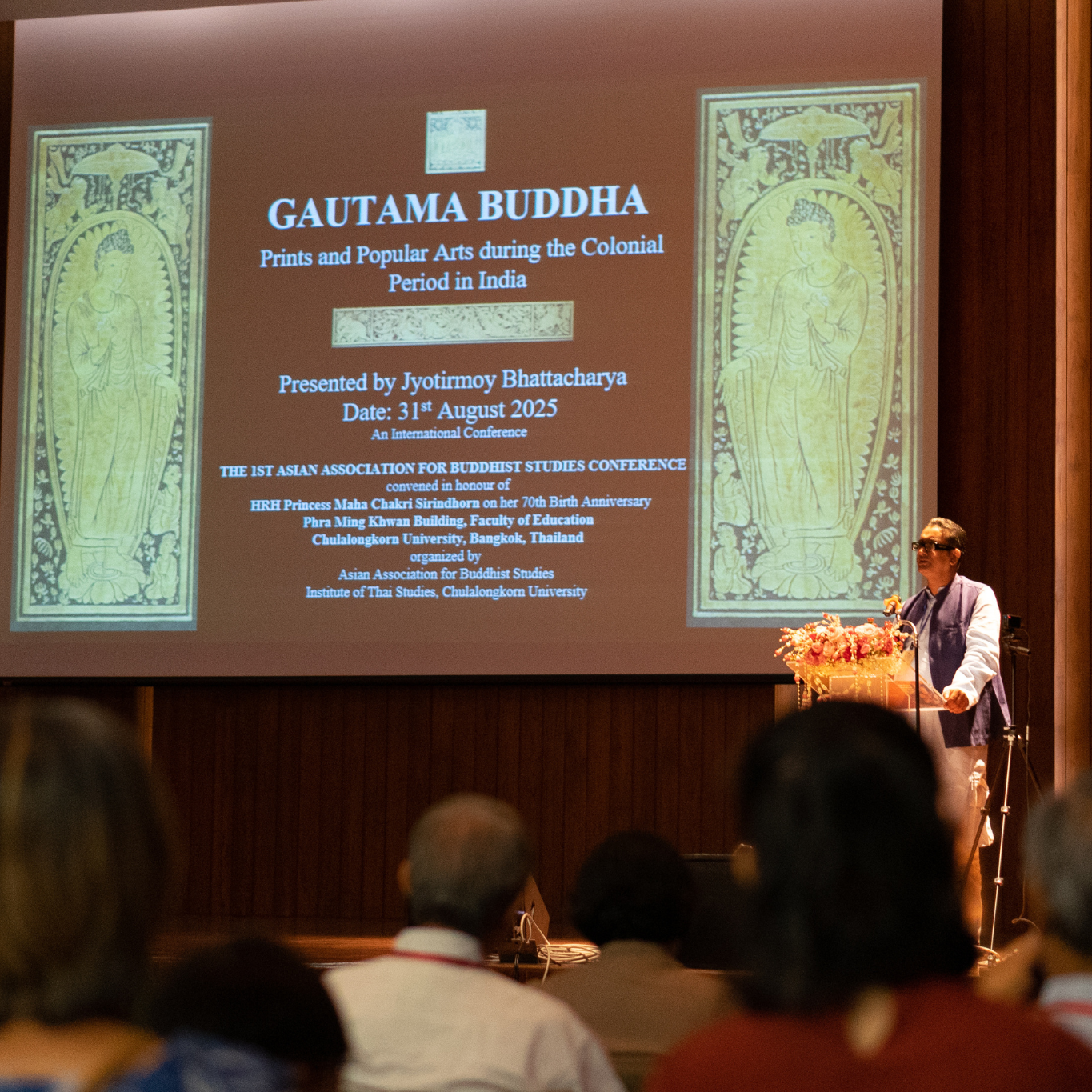 Jyotirmoy Bhattacharya participated in the inaugural Buddhist Arts Symposium, "Visualising Buddhist Narratives: Portraits of Buddha Life Stories as Cultural Linkage," on invitation, at Chulalongkorn University in Bangkok. The symposium was a highlight of the 1st International Conference of the Asian Association for Buddhist Studies (AABS). Organised by CODE Studio, SCICCA, KATS, the Thai Cultural Corner, and Chulalongkorn University. The event served as a pivotal platform for the leading scholars and researchers to engage in a productive dialogue about how Buddhist narratives connect cultures throughout Asia. Bhattacharya’s paper, "Gautama Buddha: Prints and Popular Arts during the Colonial Period in India", was presented to an engaging international audience. His presentation was part of a distinguished lineup of global speakers who shared their insights on the profound influence of Buddhist art.